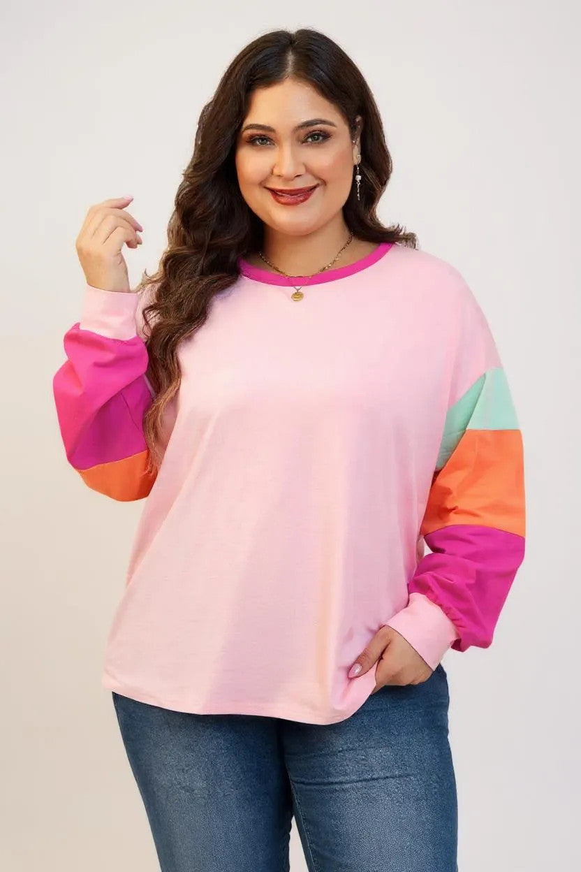 Add a pop of color to your wardrobe with the Ellie Top – a cozy, eye-catching essential made for plus-size women. Featuring a unique patchwork colorblock design, this long sleeve top is perfect for cooler days and layering. The soft, high-stretch fabric offers comfort without compromising shape, while the relaxed fit makes it easy to wear from morning errands to casual dinners. Ideal for autumn through spring, it pairs effortlessly with jeans, leggings, or joggers.